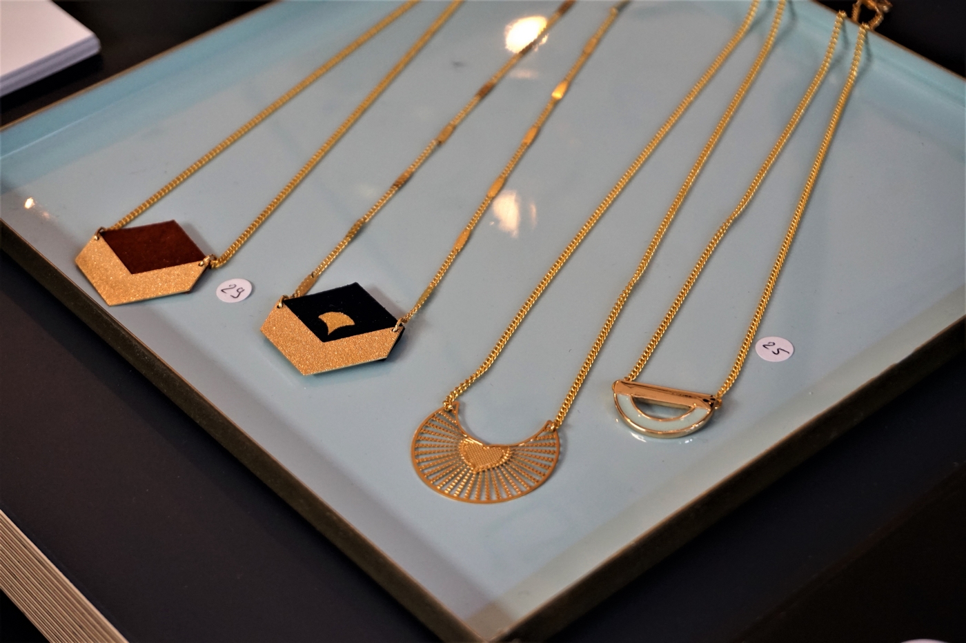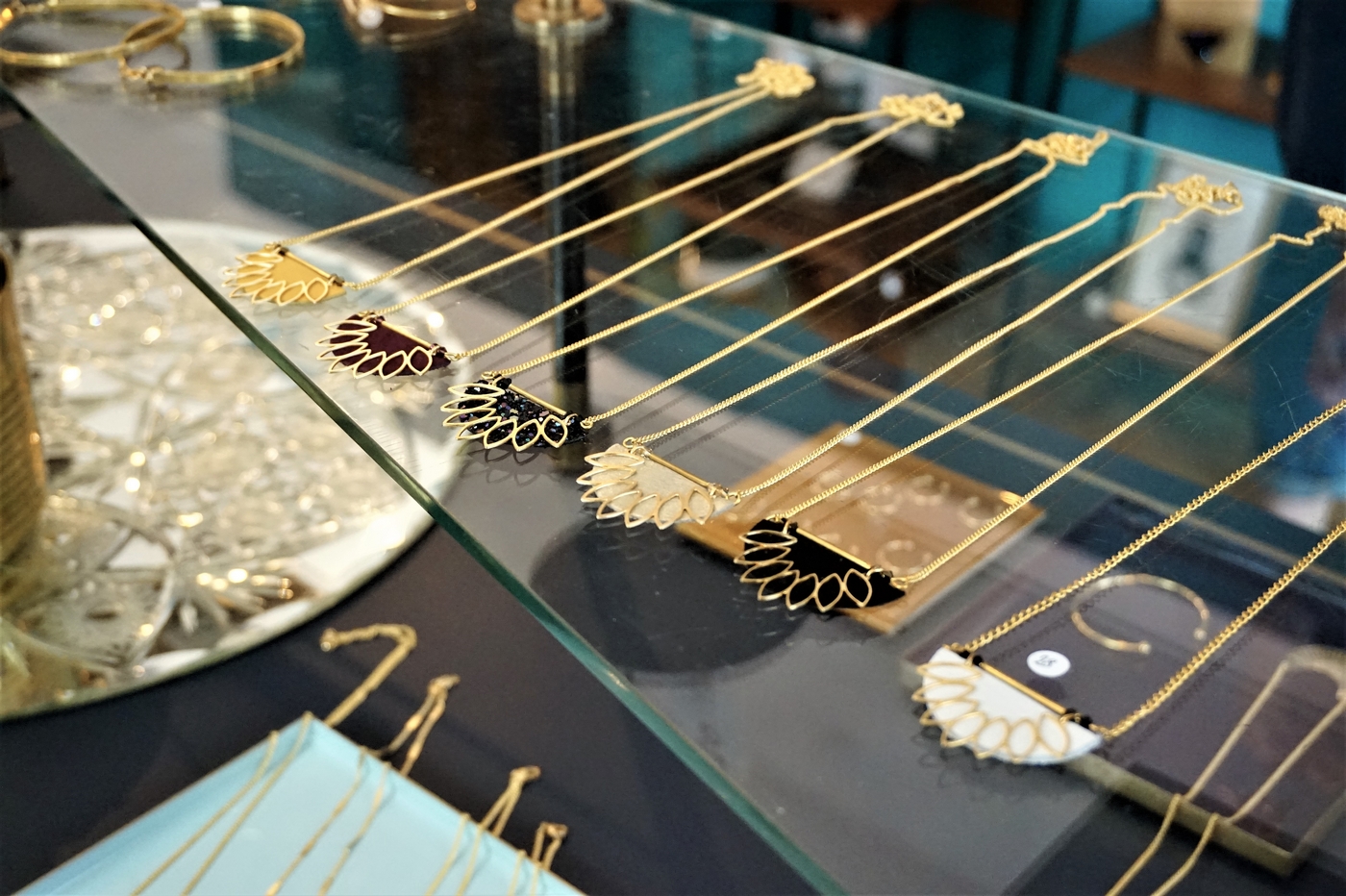 Moi qui aime de plus en plus porter du doré et qui aiment tout ce qui est coloré, j’étais ravie de cette découverte. Et vous voulez savoir le mieux dans tout ça ? Le prix, entre 10 et 35€ le bijou ! Oui, oui, oui, vous avez bien entendu.