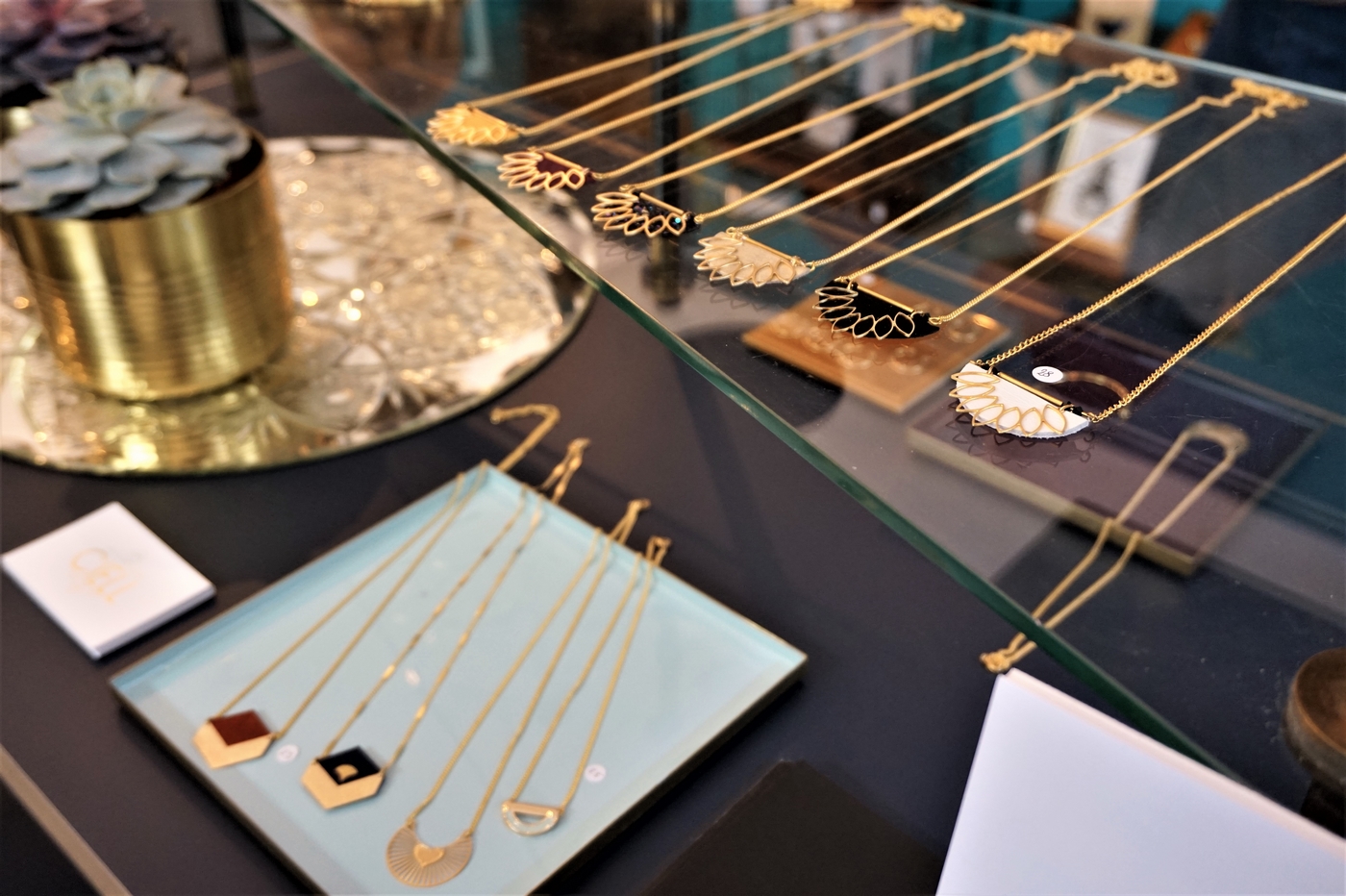 La première étape de ce Shopping Tours Bordeaux a été cette splendide boutique de créateurs. Nous y avons rencontré Gwenaelle & Laetitia qui ont fondé leur marque de bijoux Ciell en 2013. Ce n’est que tout récemment, en Décembre 2017 qu’elles ont inauguré leur première boutique officielle. Une concrétisation fabuleuse pour ces 2 entrepreneuses. À l’intérieur, on retrouve donc tout une gamme de bijoux en cuir : bracelets, bagues, colliers, boucles d’oreilles dans un esprit très coloré. Travailler le cuir a été, pour elles, une évidence. Elles en ont ainsi fait le matériau principal de leurs collections. Afin de réduire leur impact environnement, elles récupèrent des cuirs non utilisés présentant un défaut provenant de l’industrie du luxe. Egalement, elles achètent des chutes de cuir chez d’autres créateurs.