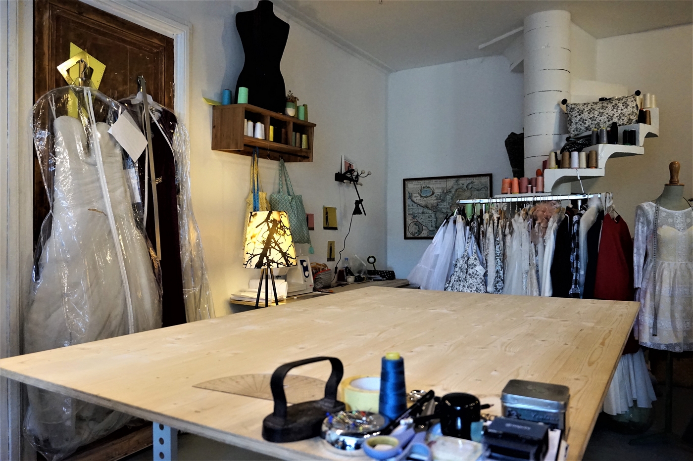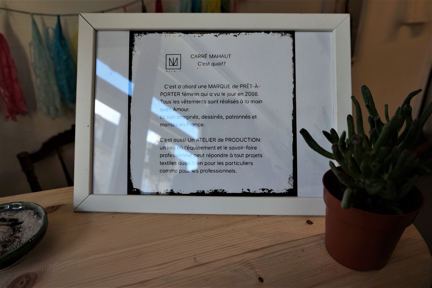 Au delà de ça, Carré Mahaut est un vrai atelier de production où elle propose aussi des prestations sur mesure pour particulier ou professionnel. Vous avez une idée en tête, en clair, elle réalise tous vos souhaits ! Par exemple, vous avez flashé sur une robe mais un détail vous chagrine ? Apportez-lui votre projet et elle vous fera la robe de vos rêves. Et comme cela ne suffisait pas, elle confectionne des robes de mariés pour la marque Louise Valentine (dans un style mariage bohème) et des kimonos pour la marque SLF Kimono (à Dubaï). Pour terminer, plus classiquement, elle fait aussi les retouches de vos vêtements et donne des cours de couture.