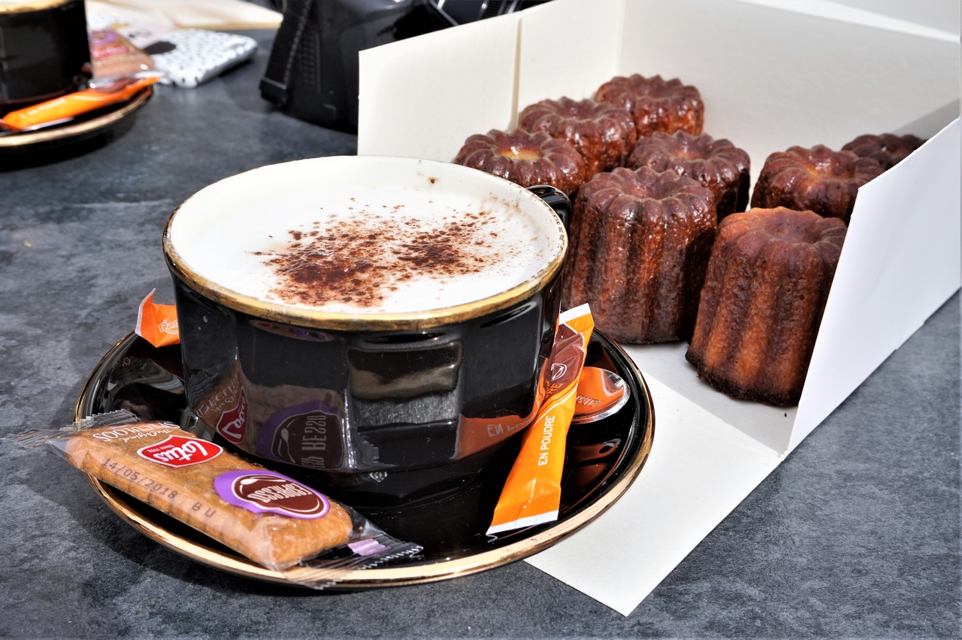 - Au 76 rue des Trois-Conils, Bruno a eu la merveilleuse idée de nous faire rentrer dans la boulangerie de l’Hôtel de ville Jocteur qui propose des pâtisseries et viennoiseries à tomber par terre. Nous avons d’ailleurs goûté leurs cannelés, un des meilleurs que j’ai mangé, tellement croustillant à l’extérieur. Oui, car autant je ne suis pas gourmande mais alors là, je suis une fan inconditionnelle de cannelés.