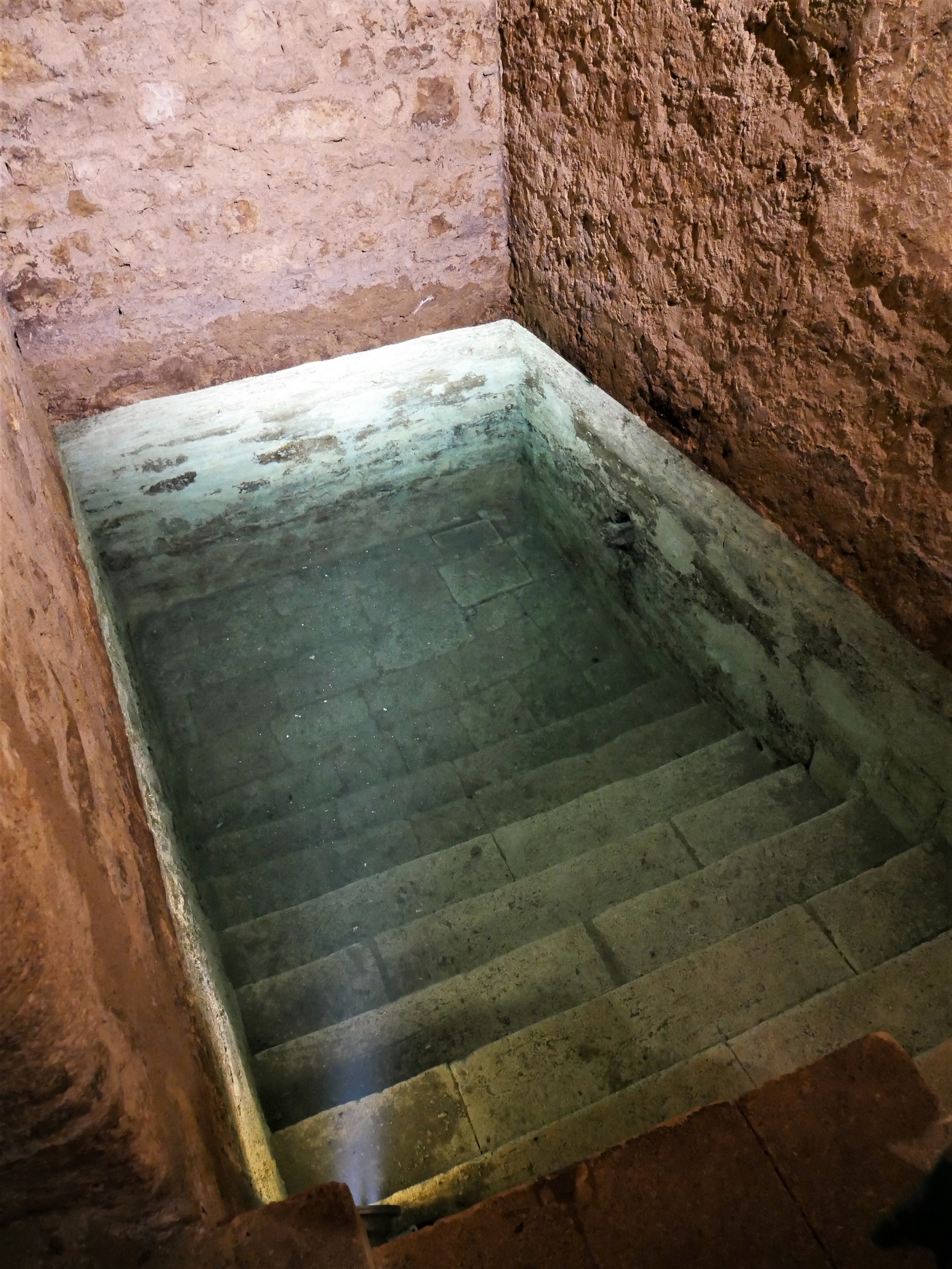 En raison d’un emploi du temps un peu chargé, nous n’avons pu visité qu’un lieu sur les 3 proposés. Marie-Hélène nous a donc emmené voir un ancien mikvé (= bain rituel juif de purification) qui est un des mieux conservés d’Europe et classé aux monuments historiques. Situé en souterrain dans l’ancien quartier juif de Montpellier, plus précisément au 1 rue de la Barralerie, il date du XIIIème siècle. Un endroit insolite dont on ne soupçonnerait pas l’existence.