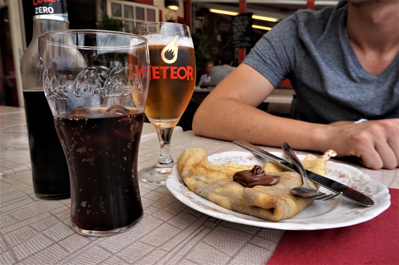 Après une longue balade jusqu’au port de Cancale, nous avons fait une halte au restaurant La Houle pour boire un coup. Ce qui m’a attiré là-bas, c’est tout d’abord la façade originale et colorée avec sa jolie petite terrasse mais aussi le nom « la houle » puisque je chambre beaucoup Jordan avec ce mot qui m’était encore inconnu avant de le rencontrer ahah. Bref, une petite pause bien méritée où Jordan en a profité pour commander une petite crêpe au Nutella à 3,80€. Je ne peux pas émettre d’avis concret puisque nous n’y avons pas mangé. Cependant, je peux vous dire que le personnel est tout simplement adorable.