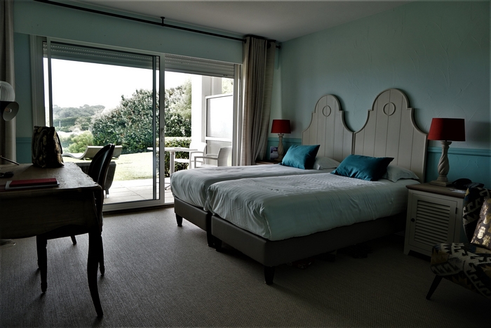 Nous avons partagé un studio à deux (le n°15, très exactement) comprenant une terrasse avec une très belle vue sur les extérieurs. Grâce aux grandes baies vitrées, depuis le lit, on aperçoit l’océan. Le kiff ! La chambre était assez spacieuse, avec tout le confort nécessaire. Mais le must du must, c’était le lit, confortable au plus haut point ! Malgré le peu d’heures de sommeil, j’ai passé une agréable nuit.